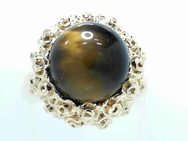 18K Gold Vintage Cats Eye Statement Ring Size 7