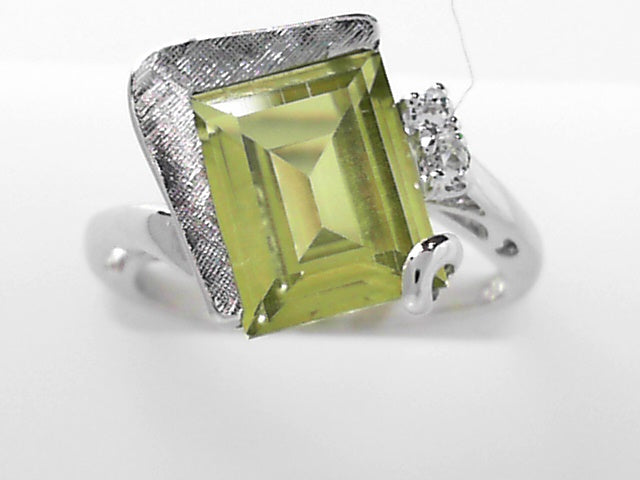 10kt Vintage Peridot Diamond Accent Ring Size 6.5