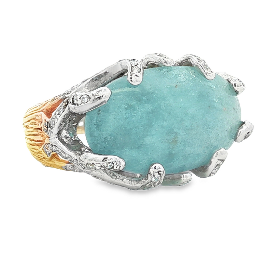 14K Gold Aquamarine & Diamond Cocktail Ring