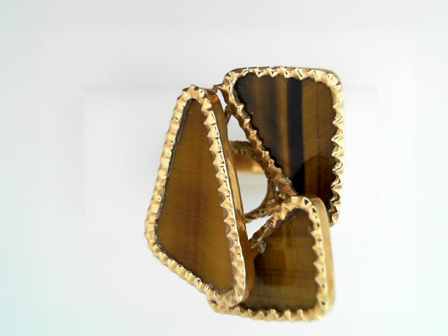 18K Yellow Gold Vintage Tiger Eye Free Form Statement Ring