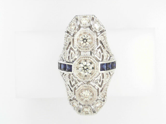 14K White Gold Art Deco Diamond & Sapphire Vintage Ring