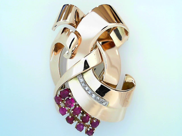18K Gold Vintage Ruby Diamond Collector's Pin