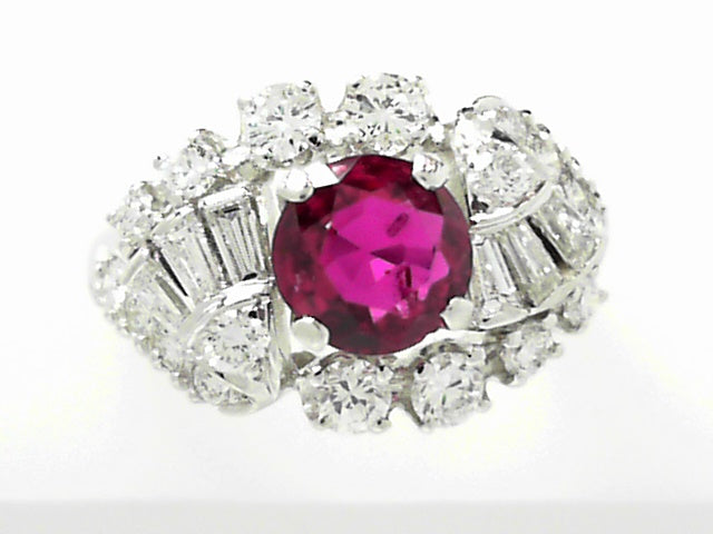 Vintage Platinum Ruby & Diamond Antique Ring, Size 6