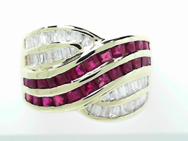 14K Gold Ruby Diamond Cocktail Ring Size 7.25