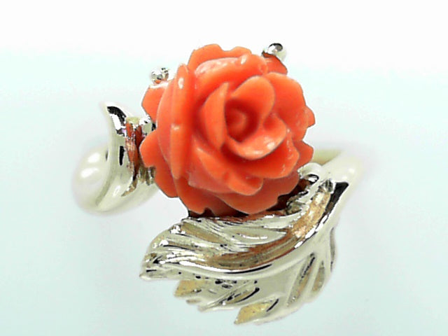 14kt Gold Vintage Coral Flower Ring - Delicate Artisan Piece