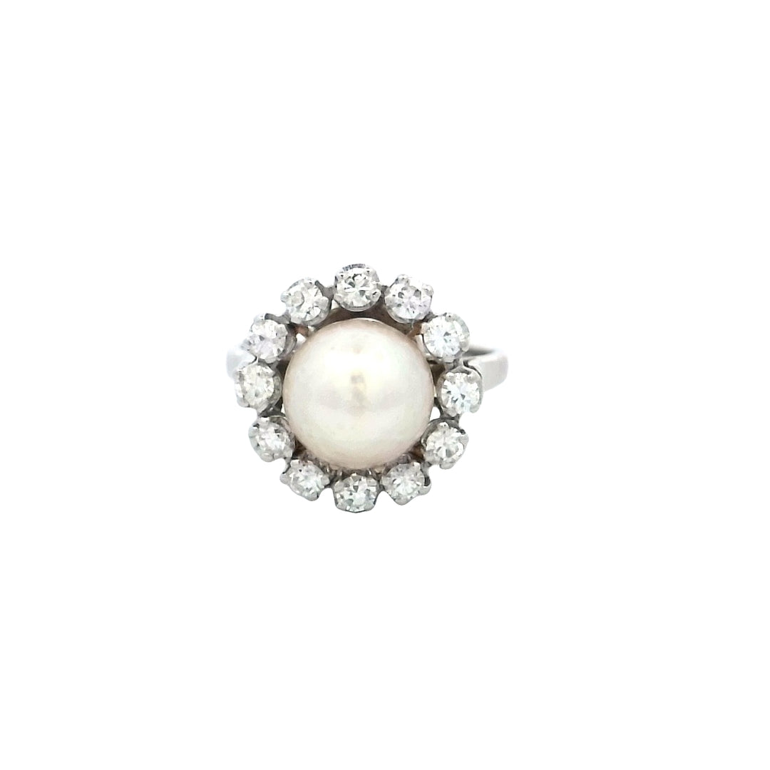 Platinum 11mm South Sea Pearl & Diamond Vintage Cluster Ring