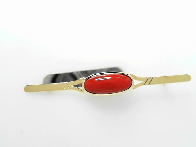 18K Gold Vintage Red Coral Decorative Pin Accessory